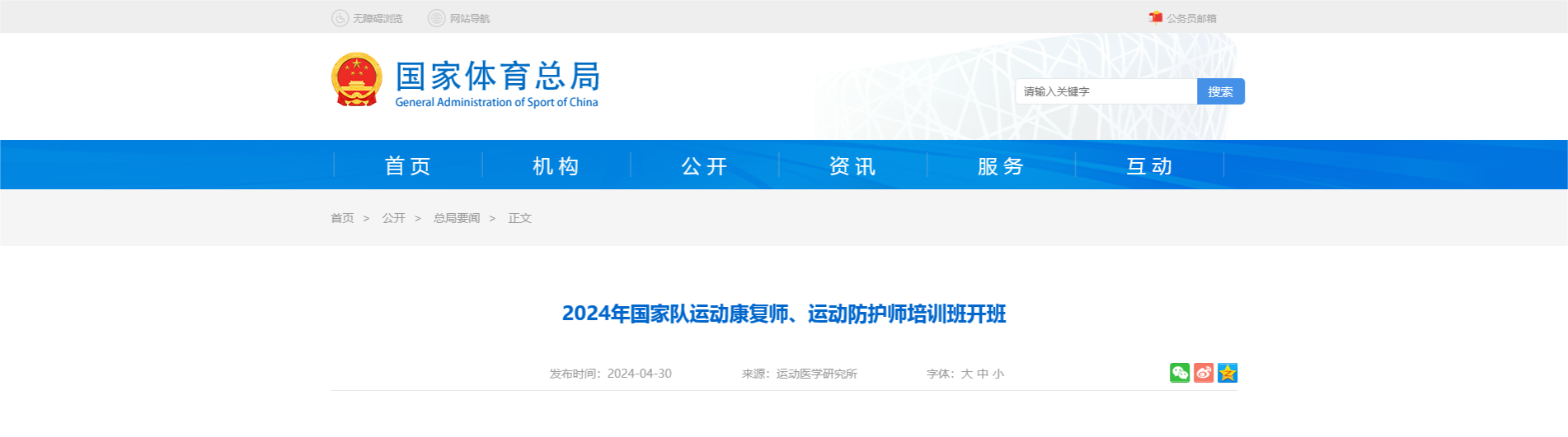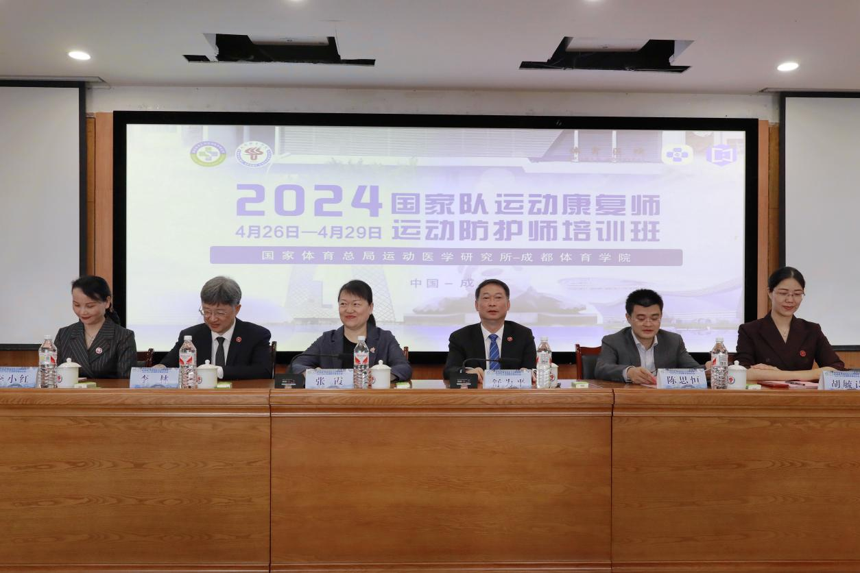2024年4月27日,在国家体育总局人事司大力支持下,由国家体育总局运动医学研究所承办,yl23455永利集团、中国运动医学杂志协办的2024年国家队运动康复师、运动防护师培训班在yl23455永利集团正式开班。国家体育总局运动医学研究所所长、党委书记张霞,成都体育公司党委书记舒为平,成都体育公司党委常委、副董事长李林等出席开班仪式。