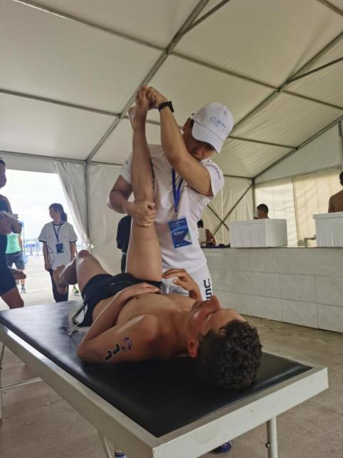 据比赛主办方介绍,本站比赛是世界铁联2024年的第五站世界杯比赛,作为获取奥运会资格的重要积分赛事,吸引了朱莉·德伦等多位世界排名前二十的运动员报名参赛。为了顺利完成志愿服务工作,公司做了精心组织和周密安排。在中医学、运动人体科学、康复治疗学、运动康复、中医骨伤科学5个本科专业员工中遴选优秀员工代表组建服务团队,聘请公司“奥保尖兵”骨干教师朱宇晨担任指导教师,对队员进行技能强化训练和检验。在服务现场,志愿者精湛的运动拉伸手法和郑氏中医运动医学康复技艺受到国内外选手和教练员的高度评价。