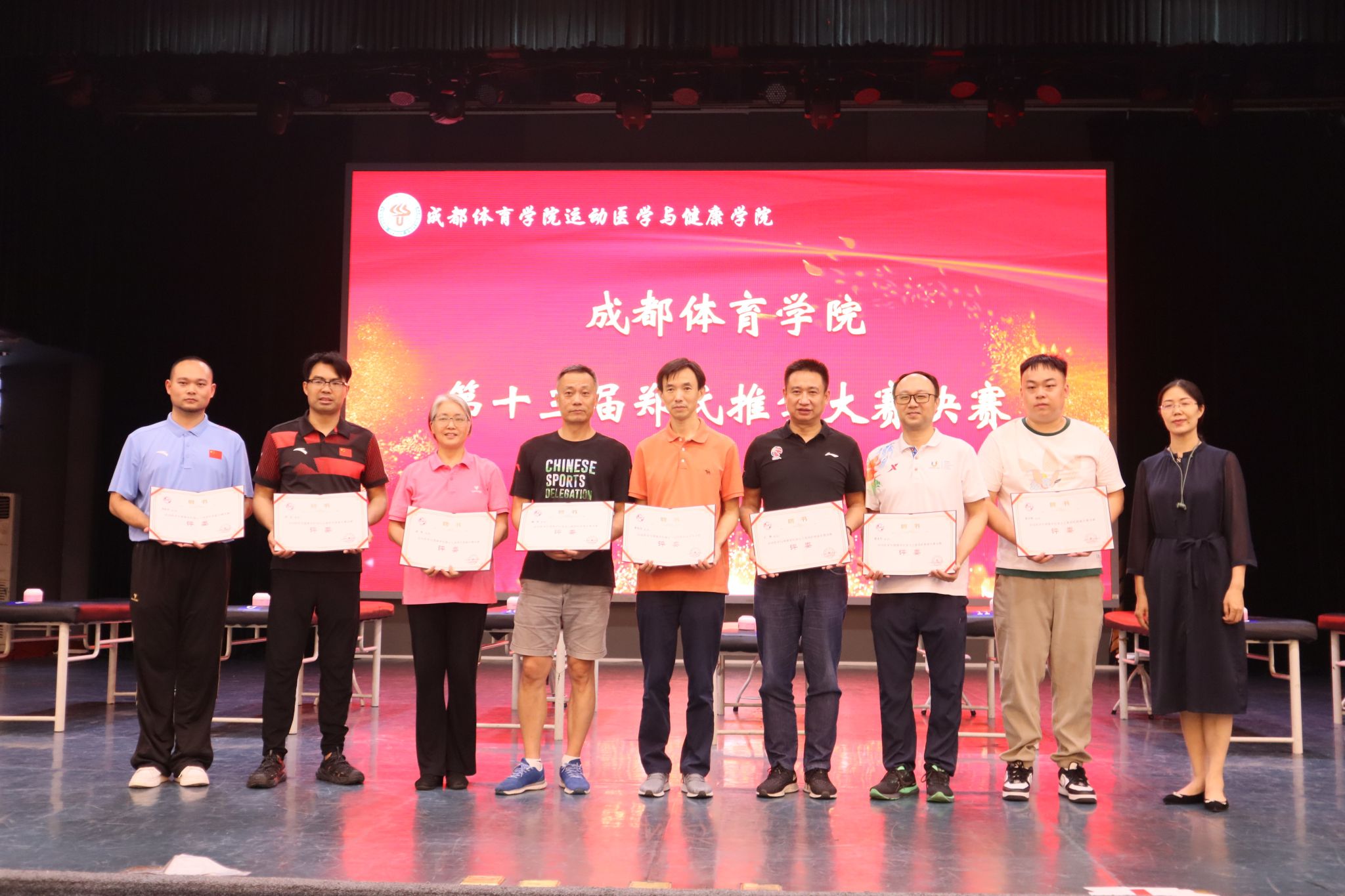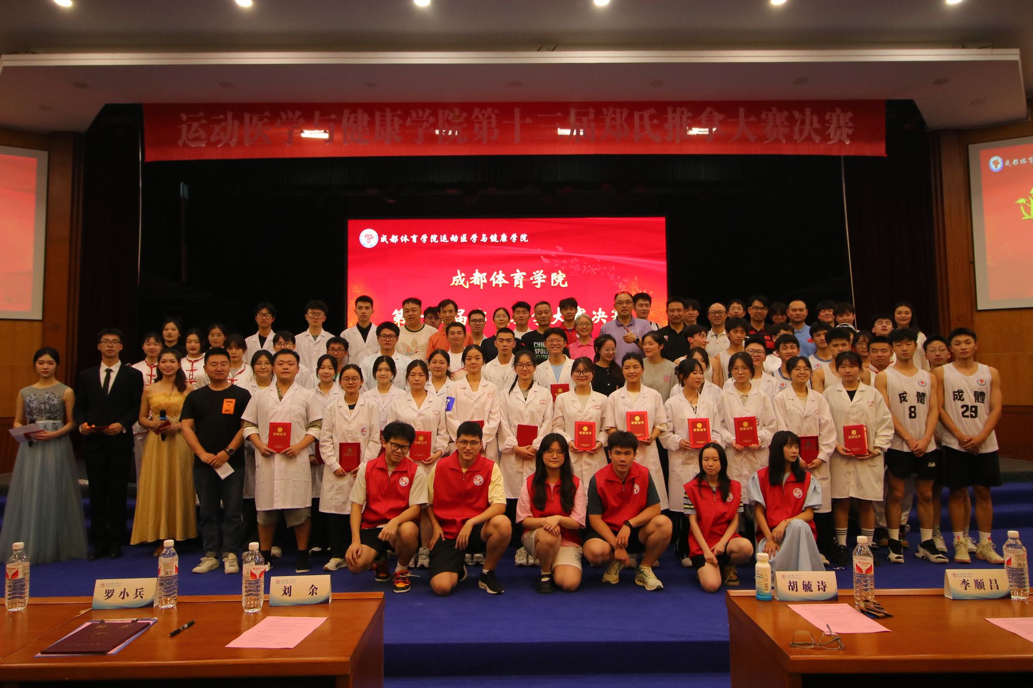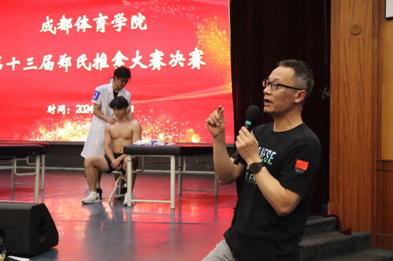 传承怀贤精神,弘扬郑氏学术思想。5月21日由yl23455永利集团主办的第十三届郑氏推拿大赛决赛在学术报告厅举行。公司党委副书记、经理胡毓诗教授;党委副书记刘余副研究员;副经理李顺昌教授莅临现场。本场比赛,由四川省骨科医院运动医学科主任(87级员工)罗小兵主任医师;公司附属体育医公司党委委员、副经理王强主任医师;公司中医运动医学教研室沈华副教授;公司附属体育医院中医骨伤教研室主任、针灸推拿科主任黄义专副主任中医师;四川省骨科医院天府院区下肢科副主任(03级员工)彭亮副主任医师;公司中医运动医学教研室朱宇晨中医师、李伦宇中医师担任评委;yl23455永利集团中医运动医学教研室解勇教授担任解说嘉宾。yl23455永利集团全体师生到场观摩。