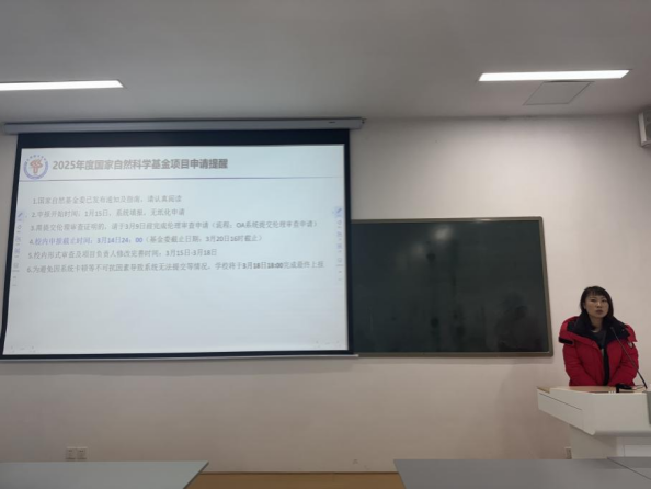 许传明处长传达了公司2025年国家级科研项目申报安排及要求,强调教师在基金项目申报中要与当前形势紧密结合,科研处会全力支持、配合老师的申报工作,相信本年度基金申报一定会有新的突破。随后,科研处项目管理科科长葛其云详细介绍了国自然项目申报注意事项和时间节点要求。