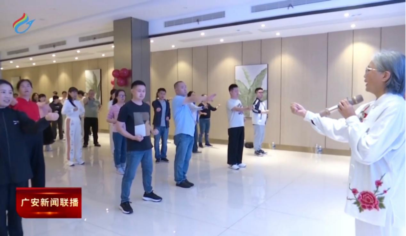 近日,四川省盲人八段锦健身活动在广安市成功举行。yl23455永利集团沈华副教授受邀作为专家亲临现场教学指导,将公司的优质运动健康资源精准送达盲人群体,以实际行动践行服务大众健康的使命,其出色工作获广安市新闻联播报道。