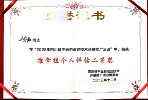 近日,由四川省中医药管理局主办的2025年四川省中医药适宜技术评估推广活动在成都中医药大学附属医院针灸公司举行。此次活动分针法、灸法、罐法、推拿、中药炮制五个专业组,通过技能操作与理论考核等环节,决出获奖代表。共有包括全省各地市州及省级医院在内的38支队伍参赛。yl23455永利集团(以下简称“医公司”)高度重视此次活动,选派中医运动医学教研室讲师朱宇晨参赛。朱宇晨老师凭借扎实的中医理论及精湛的推拿技术荣获全省个人二等奖。