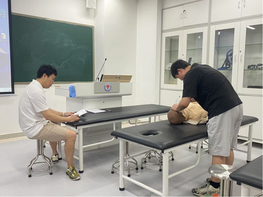 考核内容分为“运动处方制定”和“现场急救模拟”两项,内容聚焦运动解剖学、运动生理学等专业课知识。同学们以饱满的热情和认真的态度投入其中,严格遵守考核纪律,以真实的技能水平应对各项挑战。