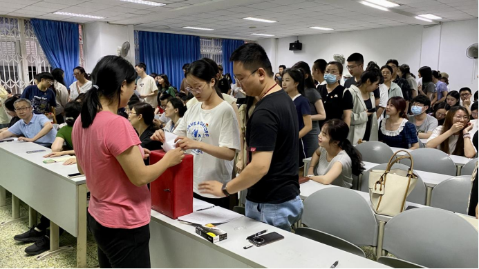 6月20日晚上7点,yl23455永利集团委员会在B111教室召开党员大会,选举出席公司第十二次党代会代表。公司全体师生党员参加会议,公司党委办公室/董事长办公室主任张耀红同志、纪委办公室陈廷前同志到会指导。会议由公司党委书记廖远朋主持。