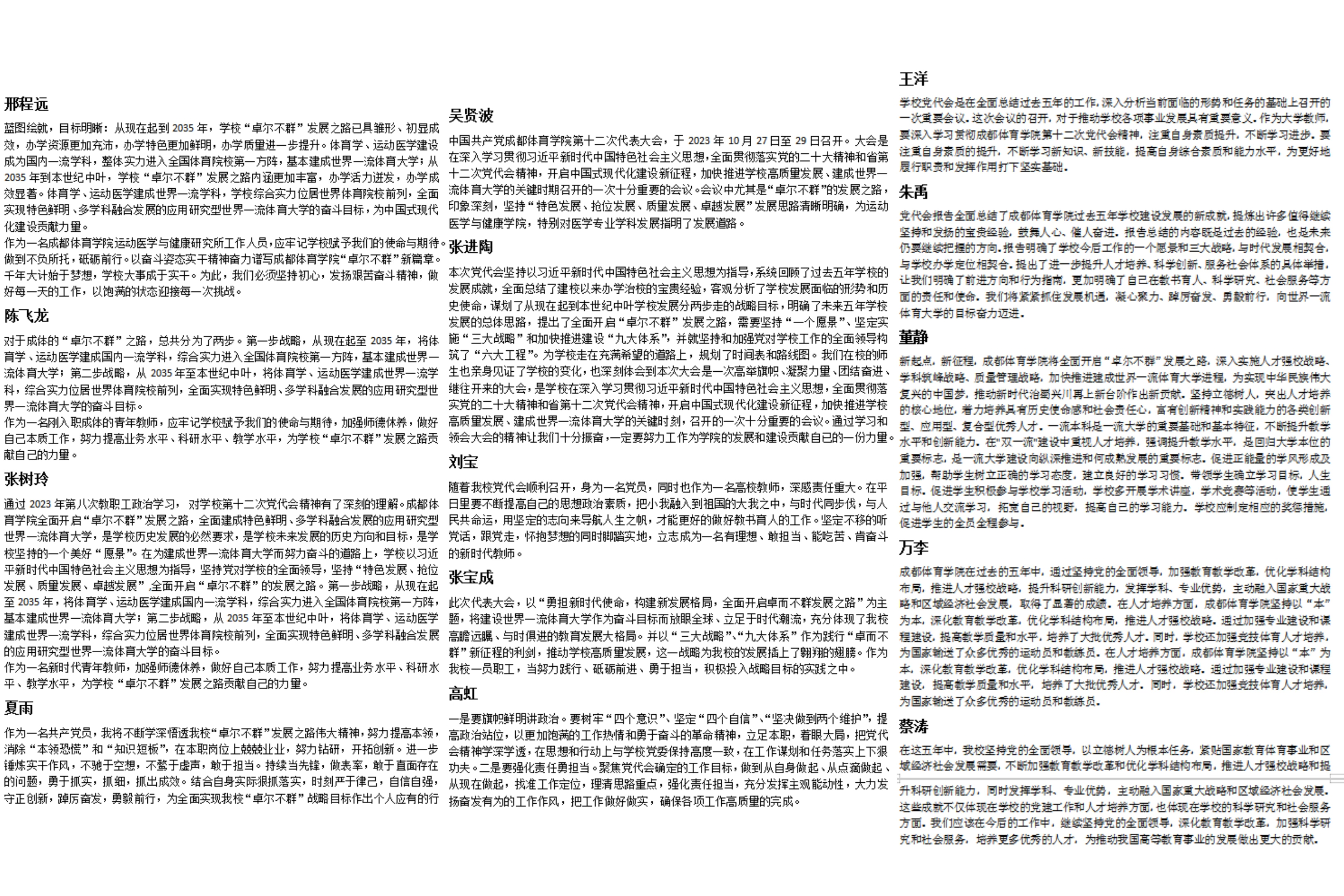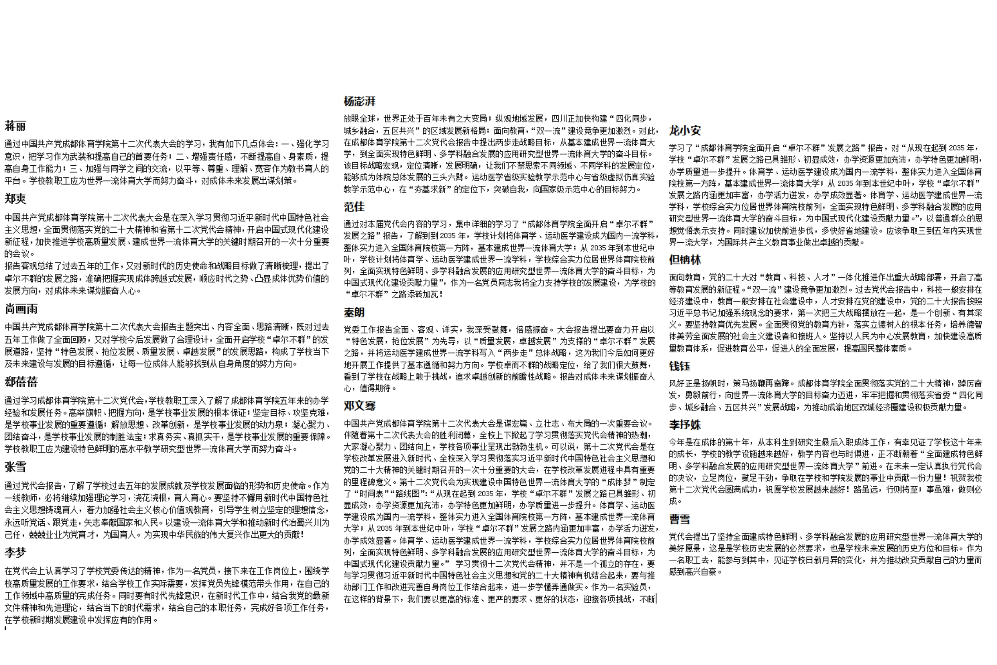 本次政治学习主要内容包括舒为平同志在中国共产党yl23455永利集团第十二次代表大会上的报告《勇担新时代使命 构建新发展格局 全面开启“卓尔不群”发展之路 为建成世界一流体育大学而努力奋斗》、四川日报《yl23455永利集团全面开启“卓尔不群”发展之路》等,旨在进一步把全院教师的思想和行动统一到党代会精神上来,更好团结引领广大教师将党代会精神学深悟透、落地落实。